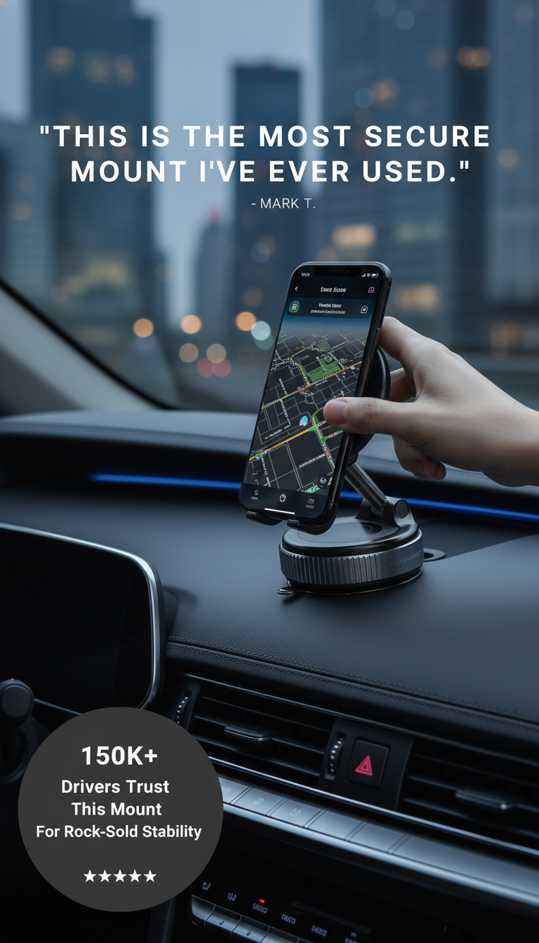Experience superior stabiliy and versatility with our product, designed to securely hold your device while driving. Benefit from strong suction and full rotation for effortless accessibility on the road.